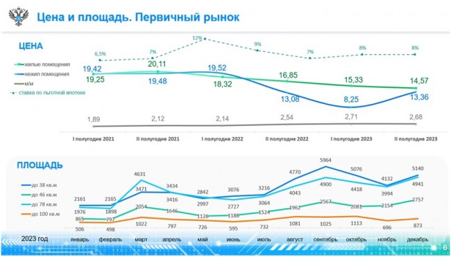 Во втором полугодии 2023 года средняя стоимость квартиры на первичном рынке Москвы составила 14,6 млн рублей. Разница в 760 тыс. рублей (-5%) к показателю января-июня прошлого года, а по сравнению с аналогичным периодом 2022 года цена изменилась на 2,3 млн рублей (-13,5%). Об этом на пленарной сессии пресс-конференции «Девелопмент новой волны» сообщила заместитель руководителя Управления Росреестра по Москве Мария Макарова.