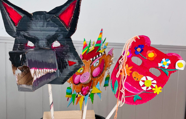 Также им предложат сделать своими руками из картона маски животных-архетипов: медведя, волка, козы, лисы и др. Они будут раскрашены в разные цвета, декорированы лентами и нитками, вдохновением послужит дымковская игрушка.