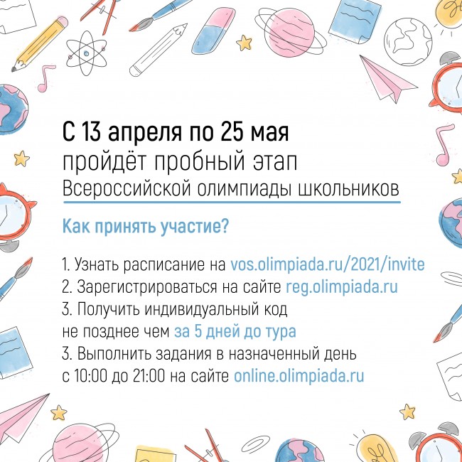 В российской столице будет организован пробный этап Всероссийской олимпиады. Его планируют провести дистанционно с 13 апреля по 25 мая. Участие доступно для учеников 3-11 классов. Проверять свои знания они будут по 24 предметам.