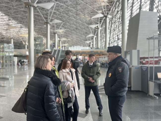 В рамках акции «Студенческий десант», приуроченной ко Дню российского студенчества, сотрудники ЛО МВД России в аэропорту Внуково приняли студентов колледжа Всероссийского государственного университета юстиции (РПА Минюста России).